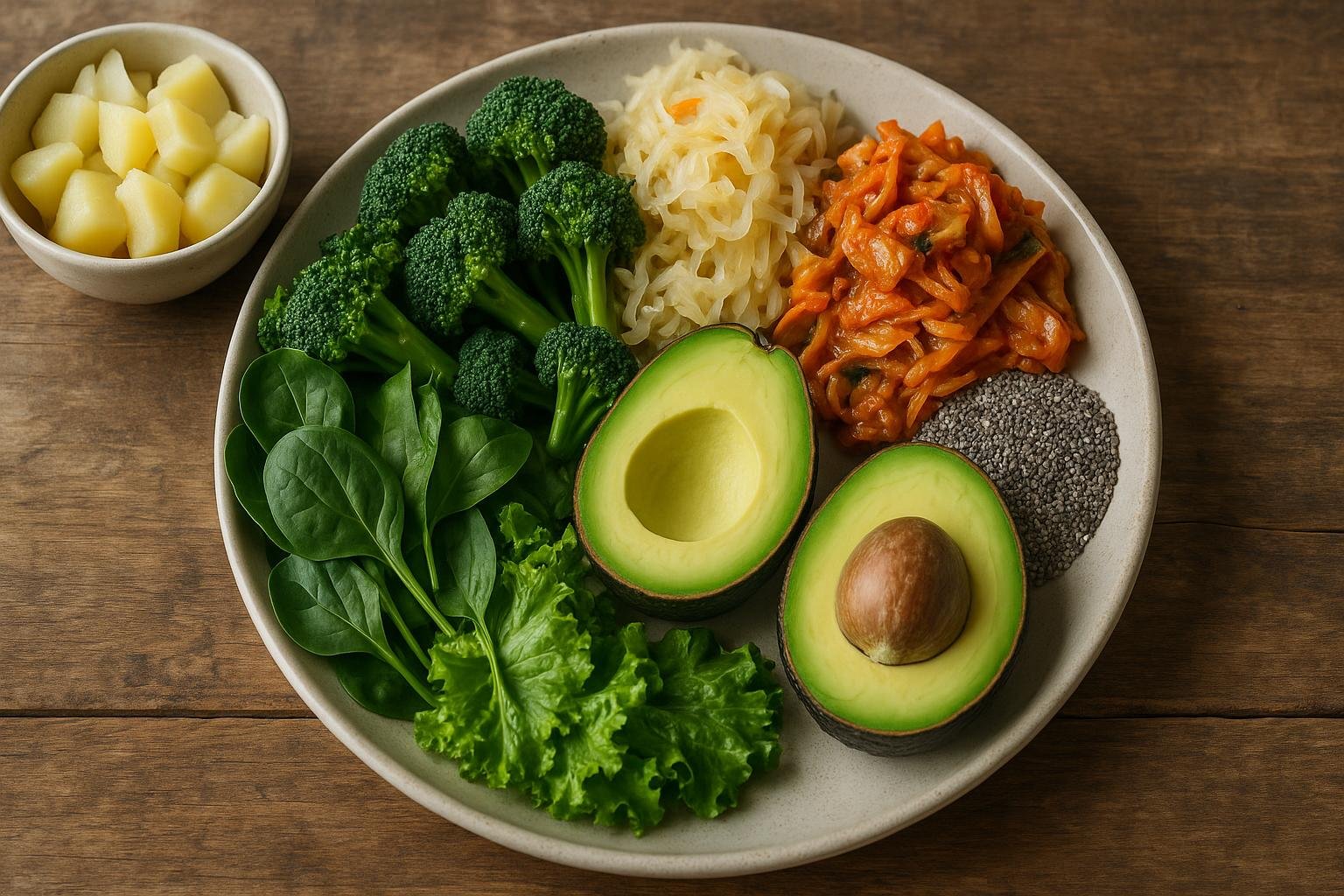 Non-starchy vegetables, avocado, and seeds deliver fiber without pushing net carbs high. Ready-made starch sources like cooked and cooled potatoes or green plantains supply resistant starch that feeds your gut microbiome. Learn more in our Net Carbs, Real Foods guide.
